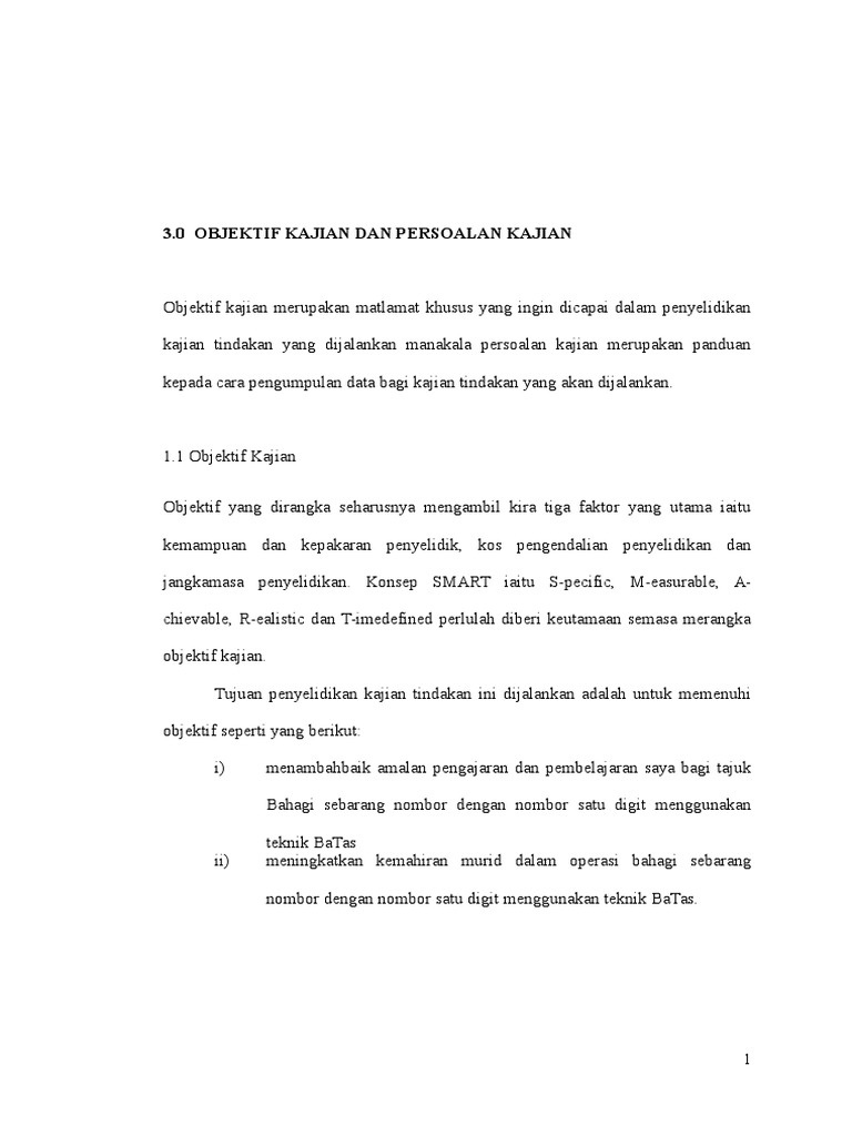 Objektif Dan Soalan Kajian Tindakan Pdf