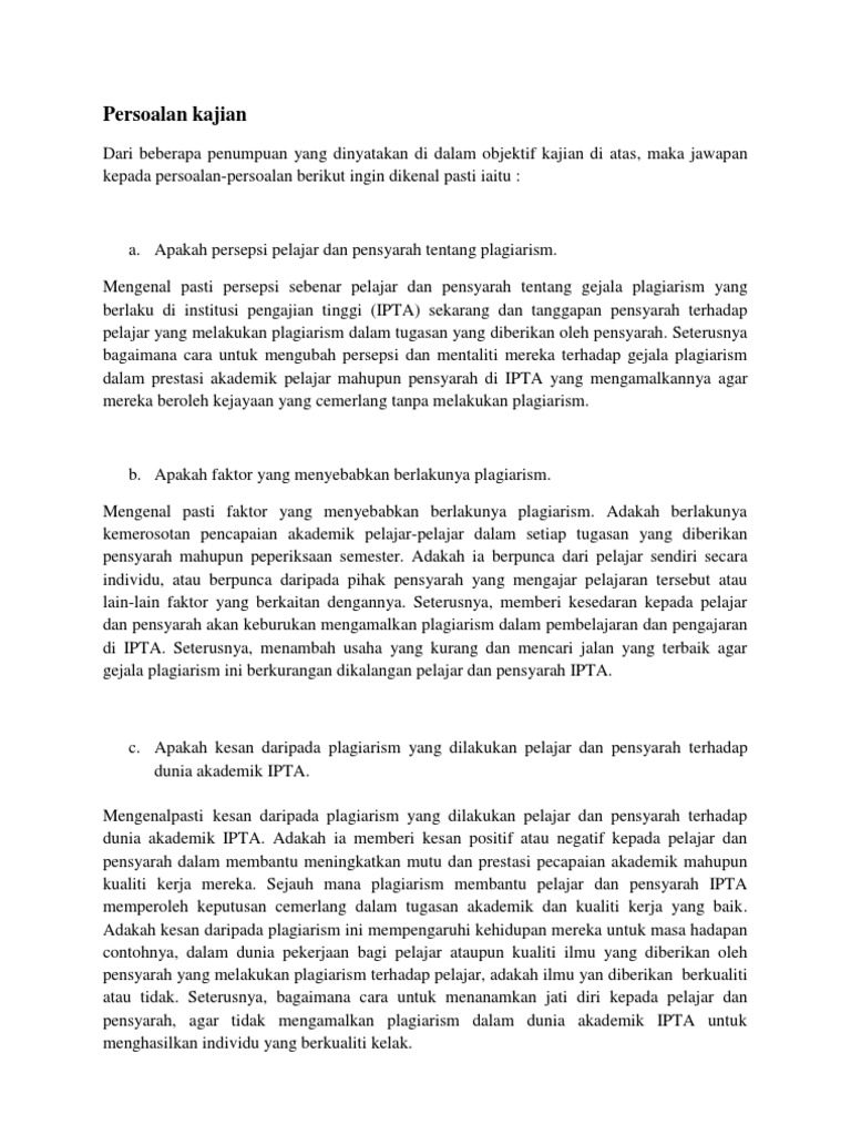 Persoalan Kajian Plagiarism Pdf